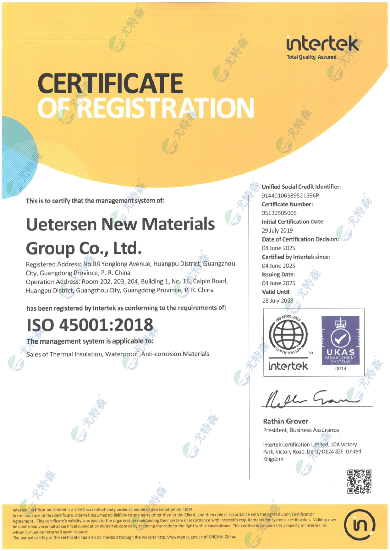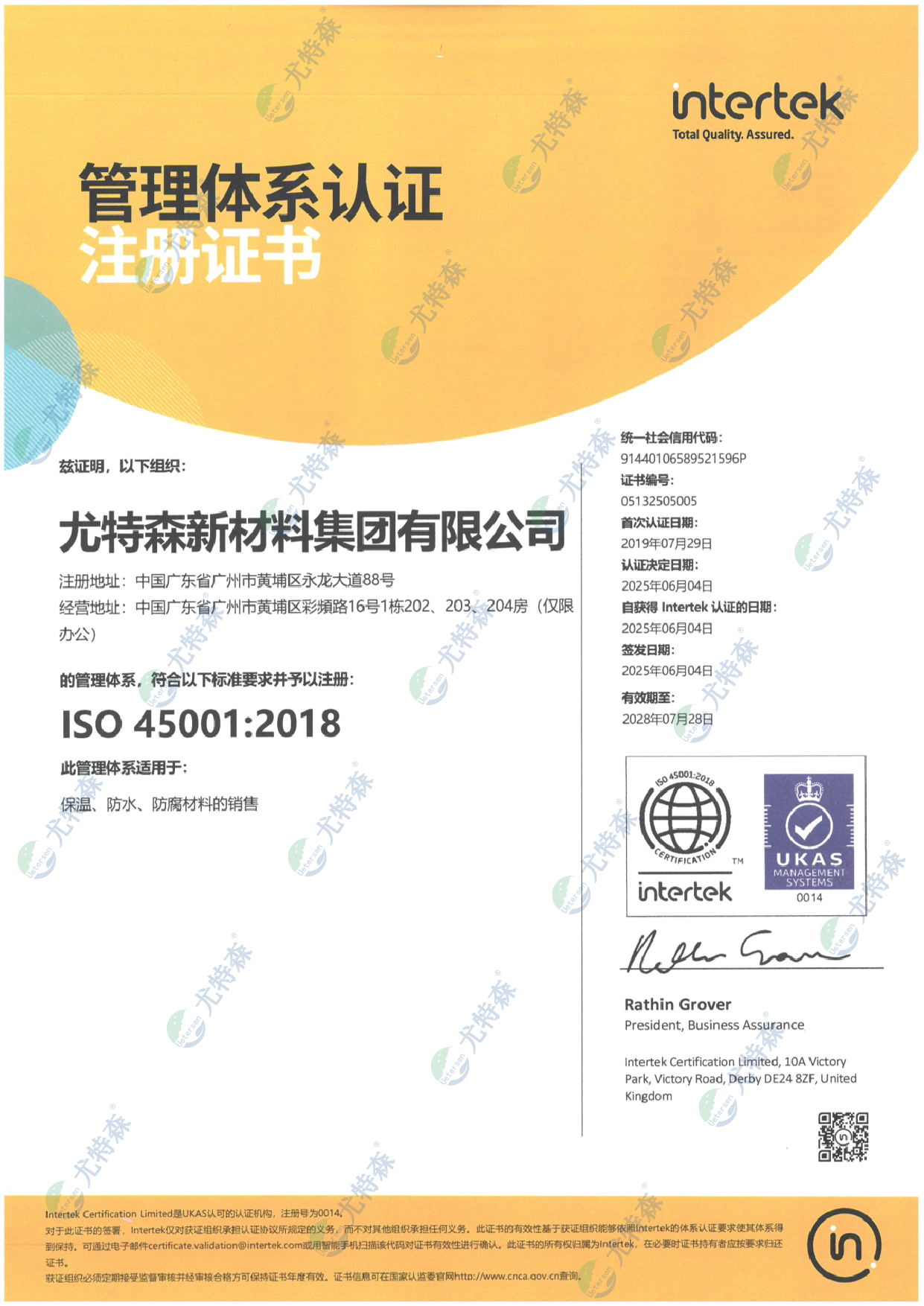 尤特森ISO证书:45001-2018(英文版)