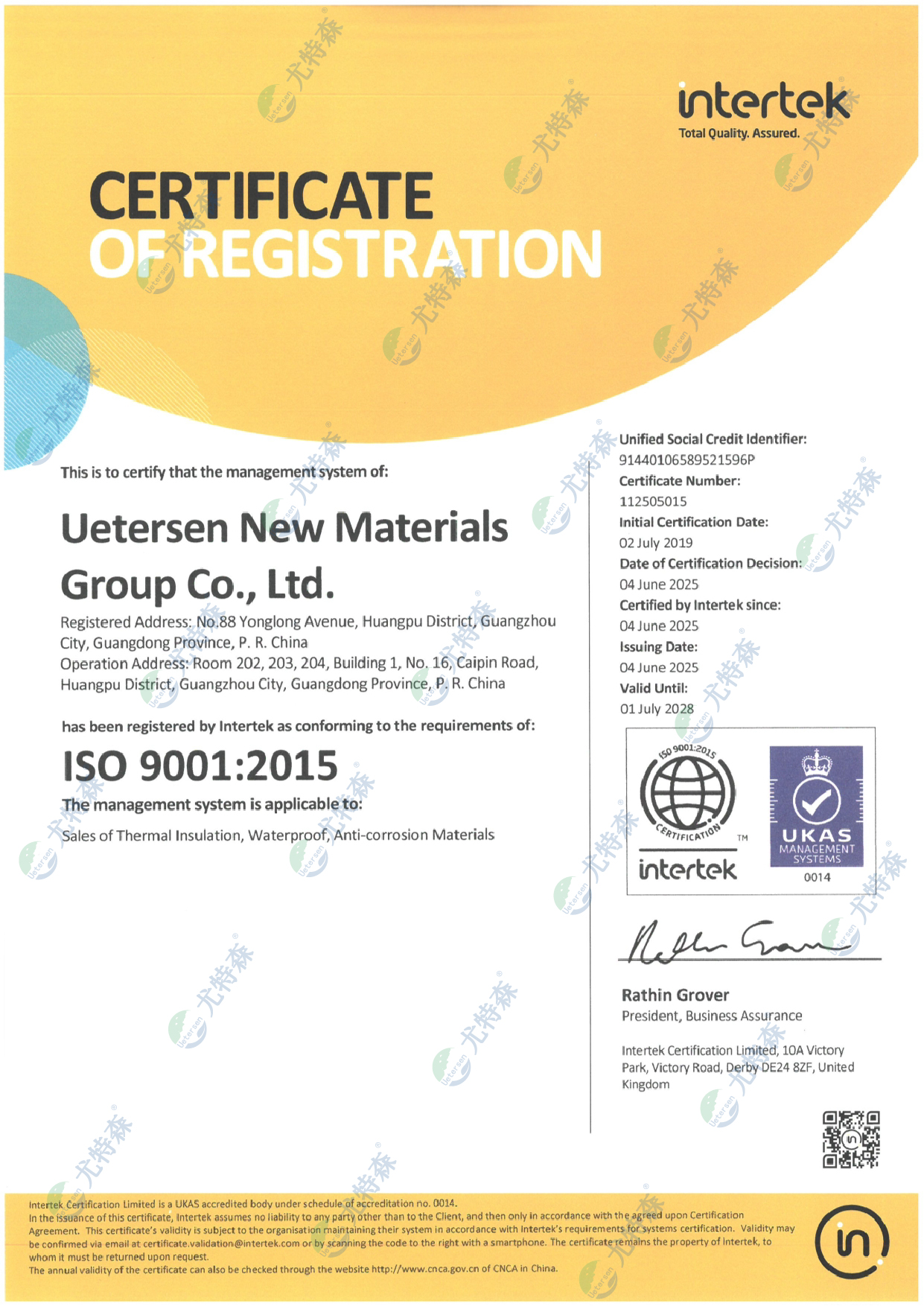 尤特森ISO证书:9001-2015(英文版)
