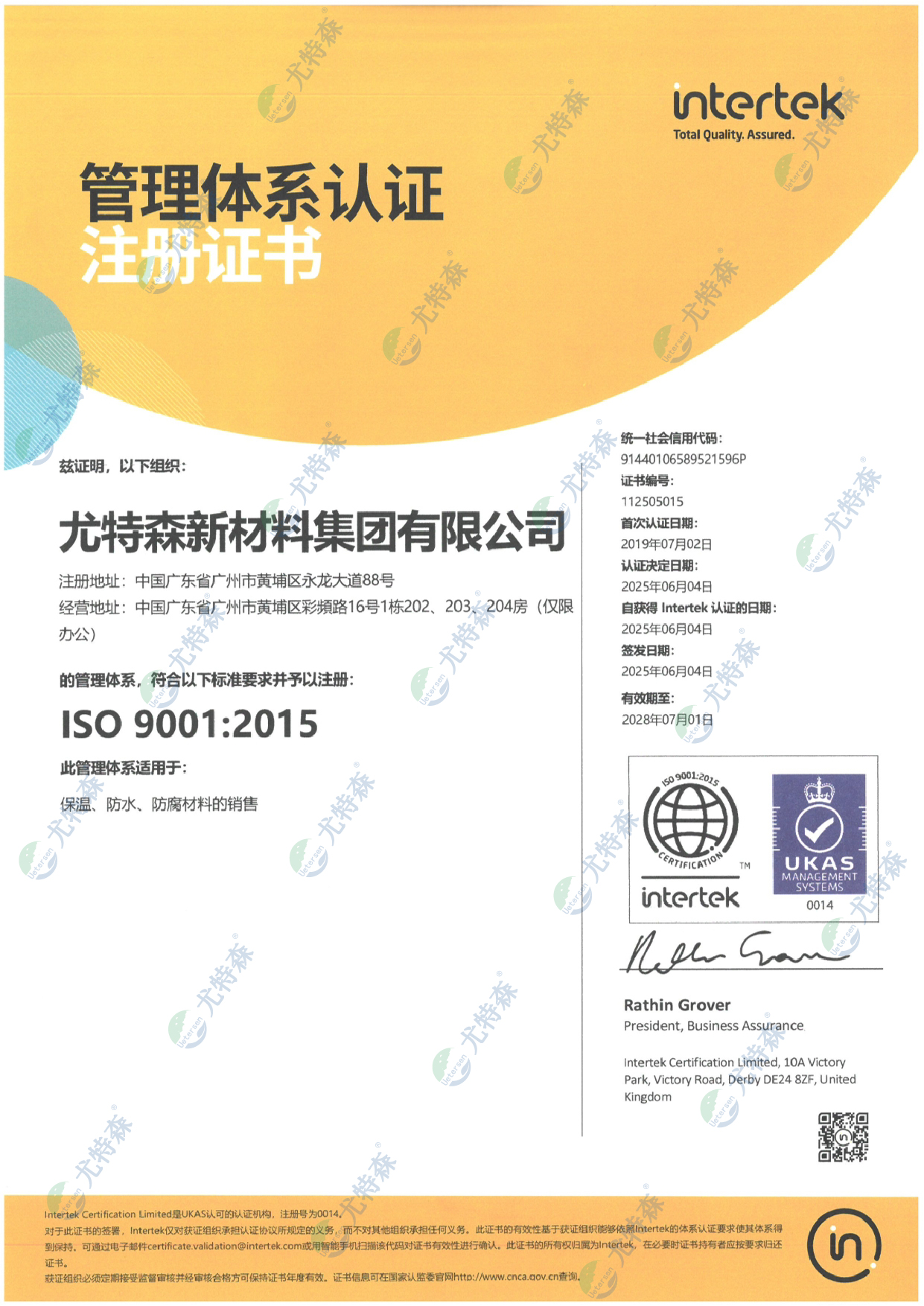 尤特森ISO证书:9001-2015(中文版)